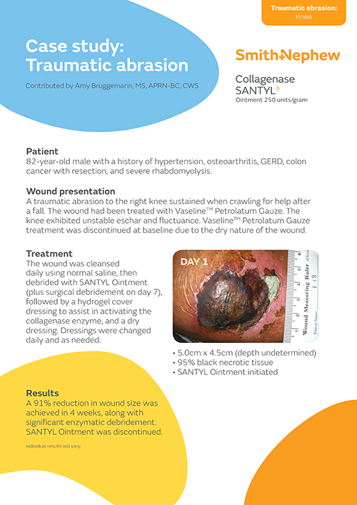 Case studies showing reduction in wound area, re-epithelialization rates and granulation tissue development help demonstrate the efficacy of Collagenase SANTYL Ointment in real-life wounds.